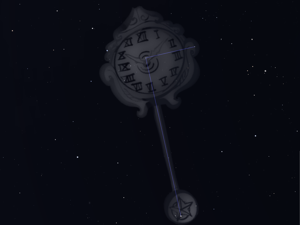 - Pochodzenie nazwy: Nazwa „Zegar” została wybrana przez Lacaille’ a , aby podkreślić znaczenie precyzyjnego pomiaru czasu i astronomii. Stworzył Gwiazdozbiór jako hołd dla zaawansowanej technologii swoich czasów.